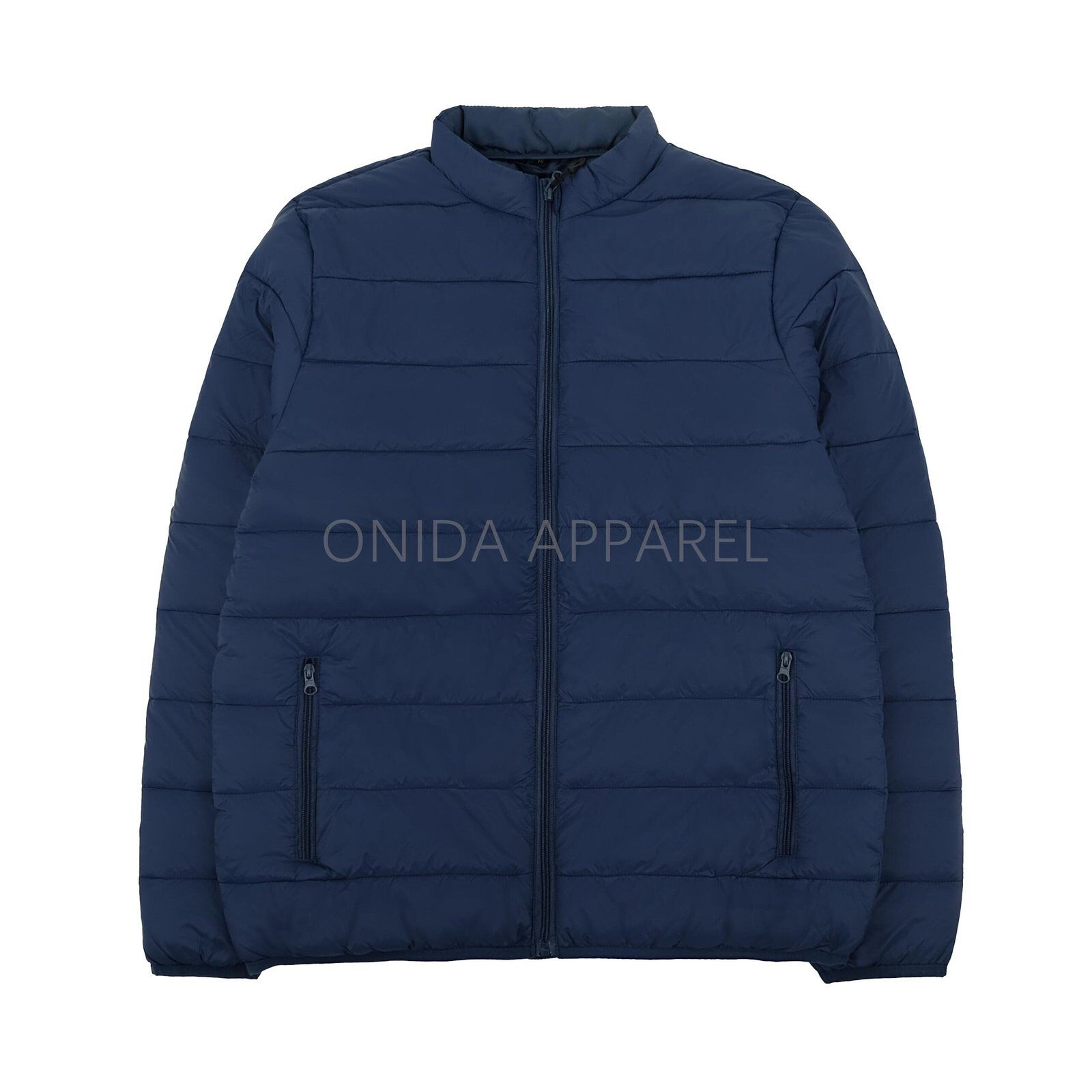 Men’s nylon jacket. Basic style with nylon zipper in pockets and center front, blue color.